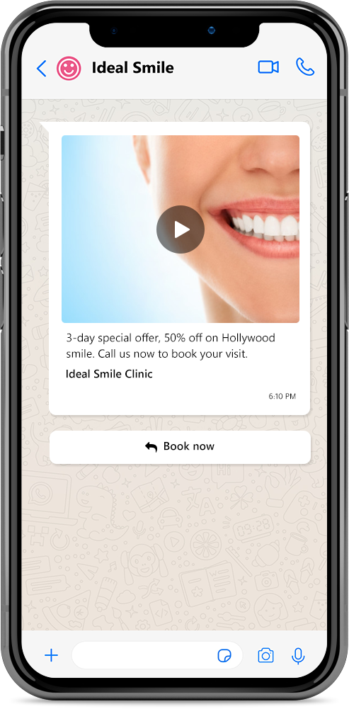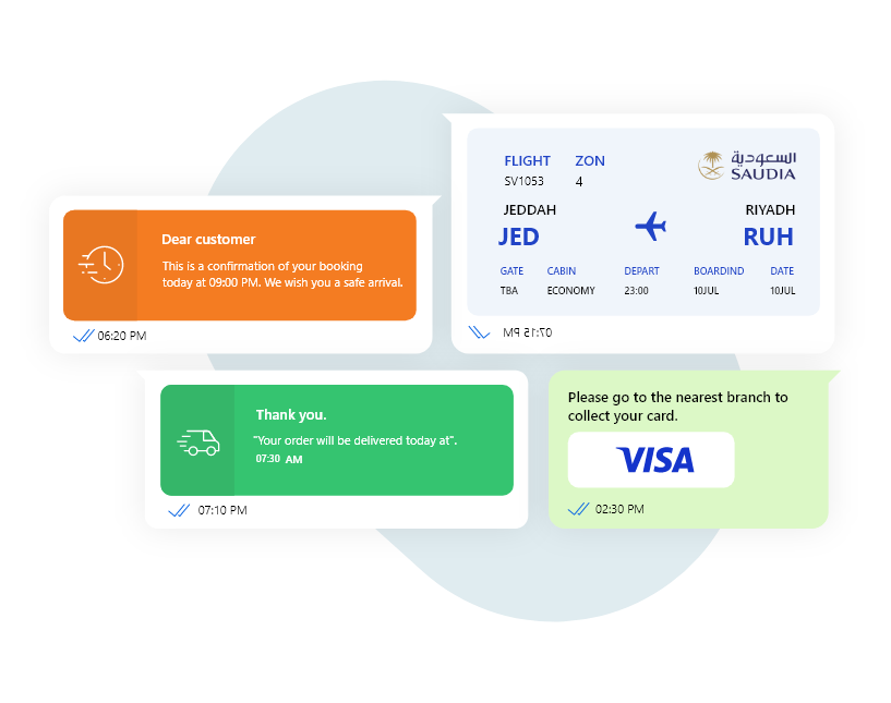 Use Whats Loop to create interactive and rich notifications that include images, files, videos, and location. You can also use it to send e-invoices, track shipments, e-tickets, financial alerts, and more.
